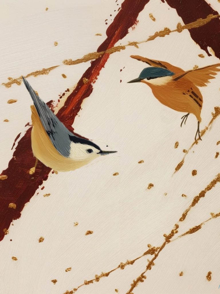 With elegant lines, minimal space, and flashes of gold, this series invites you to see not just the flight, but the pattern it leaves behind.